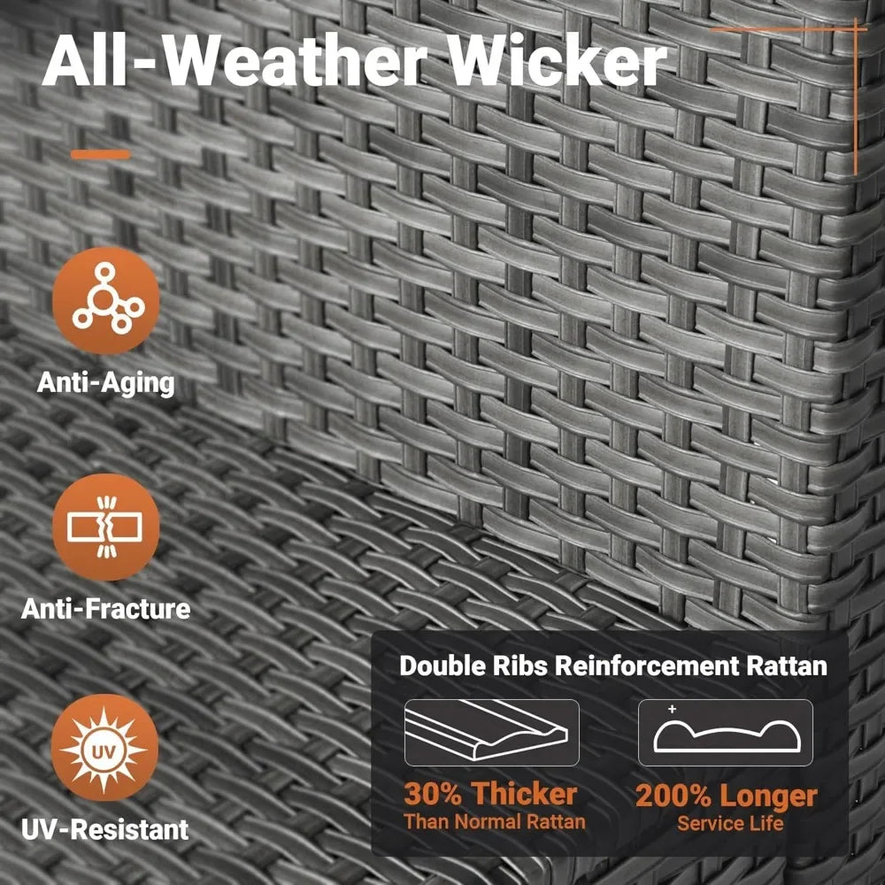 - Comfortable Outside Couch:Indulge in maximum comfort with the 3.5" thicken seat cushions and ergonomic backrest in this patio set. Ideal for extended outdoor lounging with family,and take a conversation for your guest long time, offering optimal support for your relaxation needs