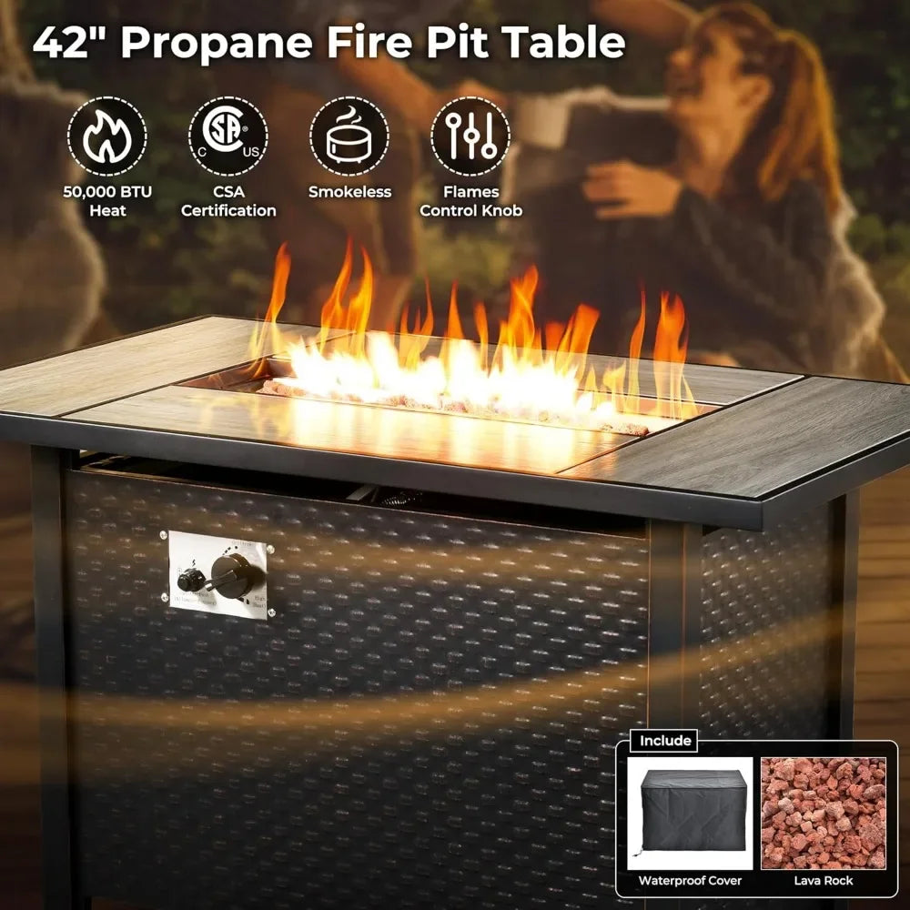 - 42" Propane Fire Pit Table:The outdoor firepit table has a powerful heat output of 55000 BTU and is CSA certified. The upgraded dual-tube burner ensures stable and clean combustion. Simply turn the knob to turn the heat on or off and enjoy the warmth